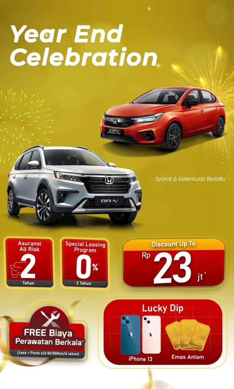 Nikmati program penjualan Honda Year End Celebration dan dapatkan kemudahan merawat Honda City Hatchback RS dan Honda BRV atau mobil Honda impianmu lainnya karena BEBAS BIAYA Paket Perawatan Berkala hingga 50.000km atau 4 tahun lho**
